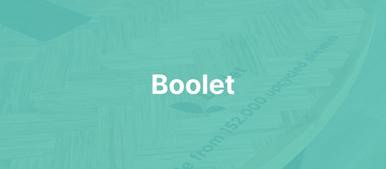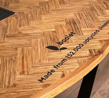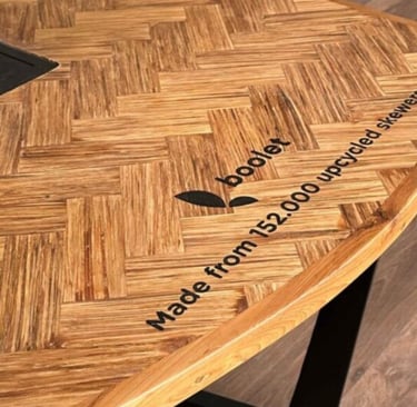 Boolet transforms post-consumer wooden waste into durable furniture and interior products through a circular upcycling process. The company collects used materials from restaurants and converts them into engineered wood panels and design products that replace virgin wood.