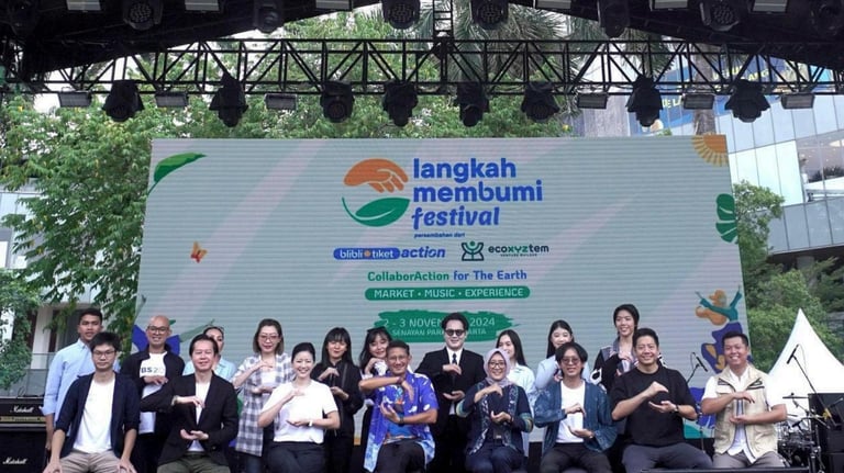 Jakarta, 2 November 2024 – Hidupkan semangat kolaborasi dalam menghadapi triple planetary crisis 1 , Blibli Tiket Action, program sustainability dari ekosistem Blibli Tiket, kembali menggandeng venture builder Ecoxyztem, mempersembahkan Langkah Membumi Festival (LMF) 2024 pada 2-3 November di Senayan Park, Jakarta. Menginjak tahun ketiga pelaksanaannya, festival ini mengusung tema ‘CollaborAction for the Earth’ dengan menggandeng pemerintah, akademisi, pelaku usaha, ecopreneur, media massa, dan masyarakat umum dalam menerapkan roadmap ekonomi sirkular sebagai langkah strategis yang dapat mengatasi krisis ini secara bersamaan.